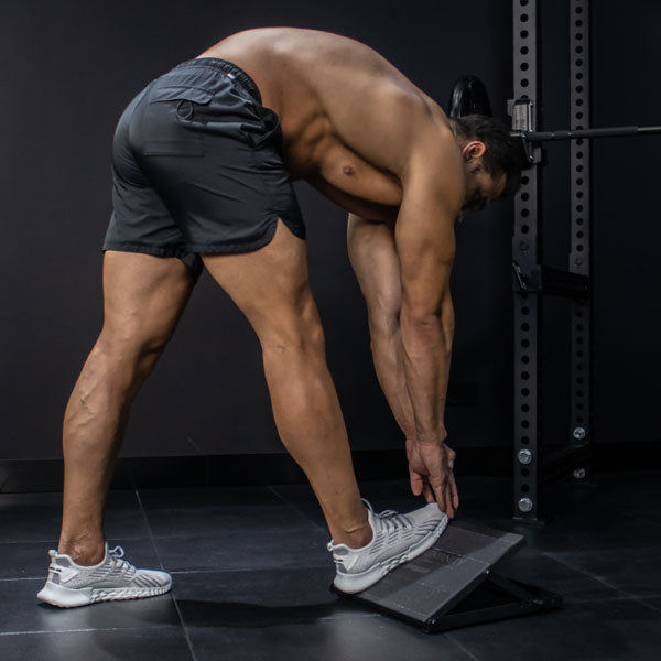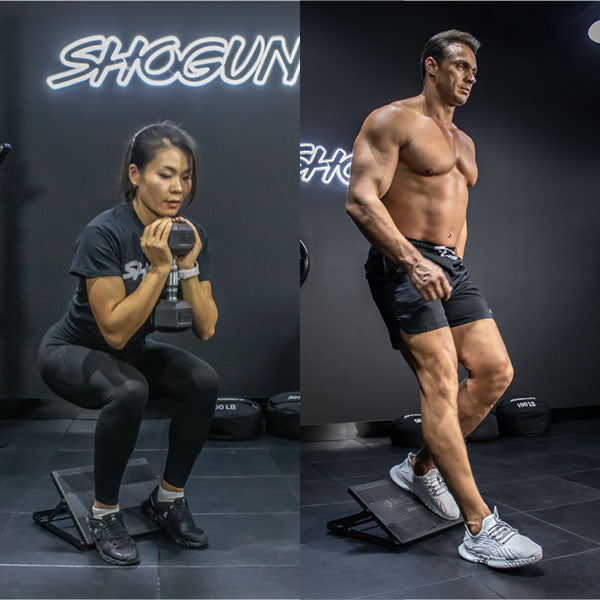 Incluye estiramiento de pantorrillas, sentadillas inclinadas, split squats y Poliquin pulses.